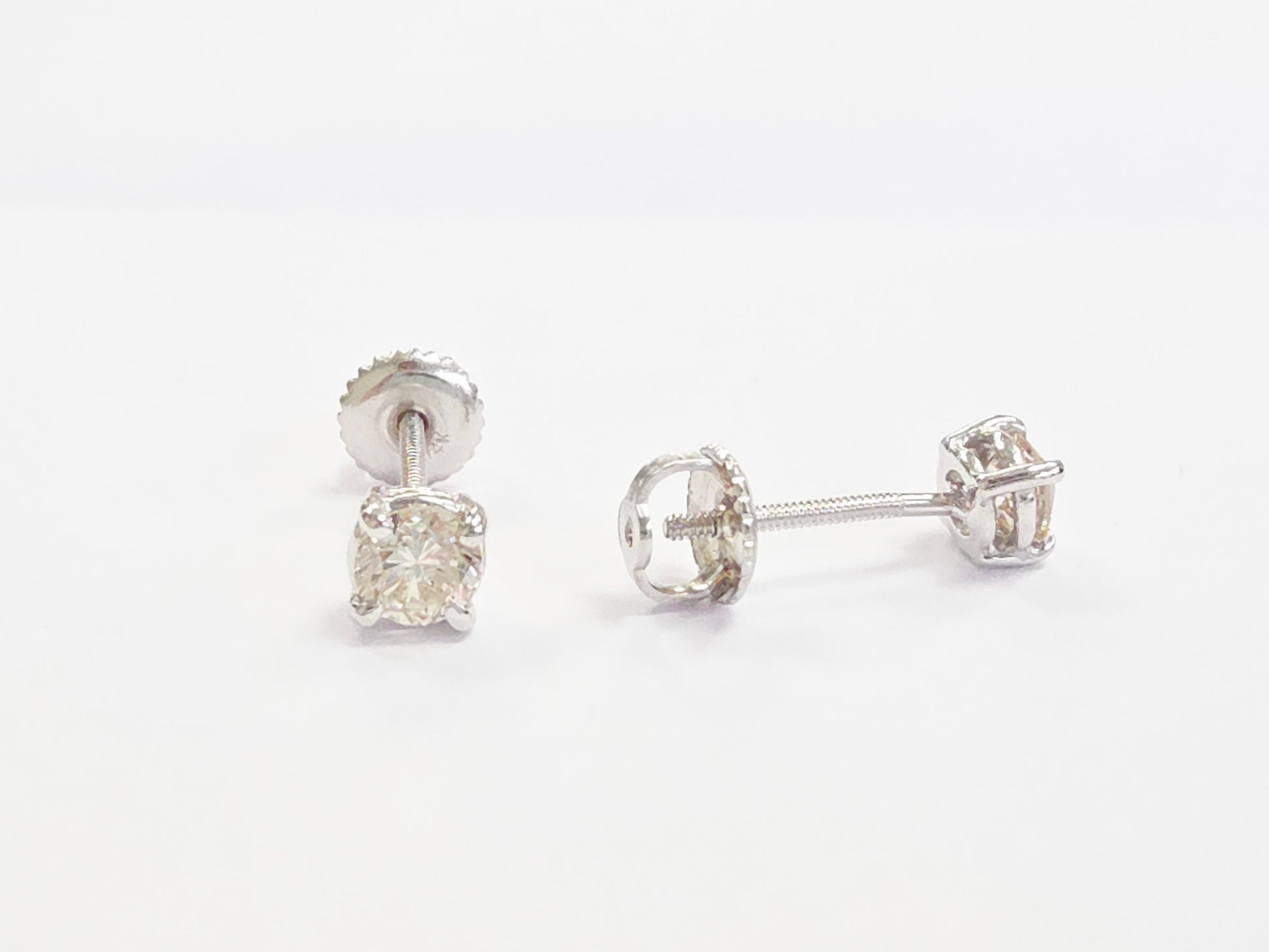 0.61 Carat Natural Diamond Round Stud Earrings in 14K White Gold