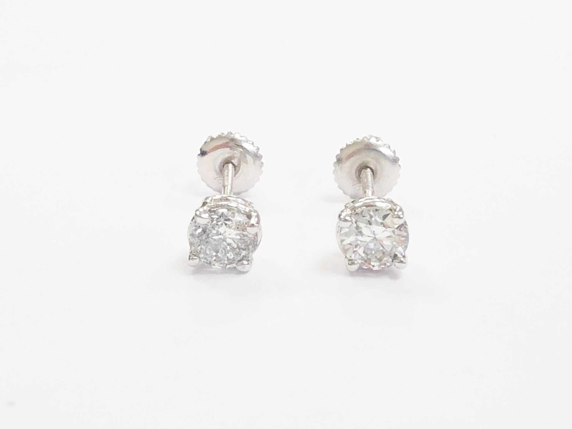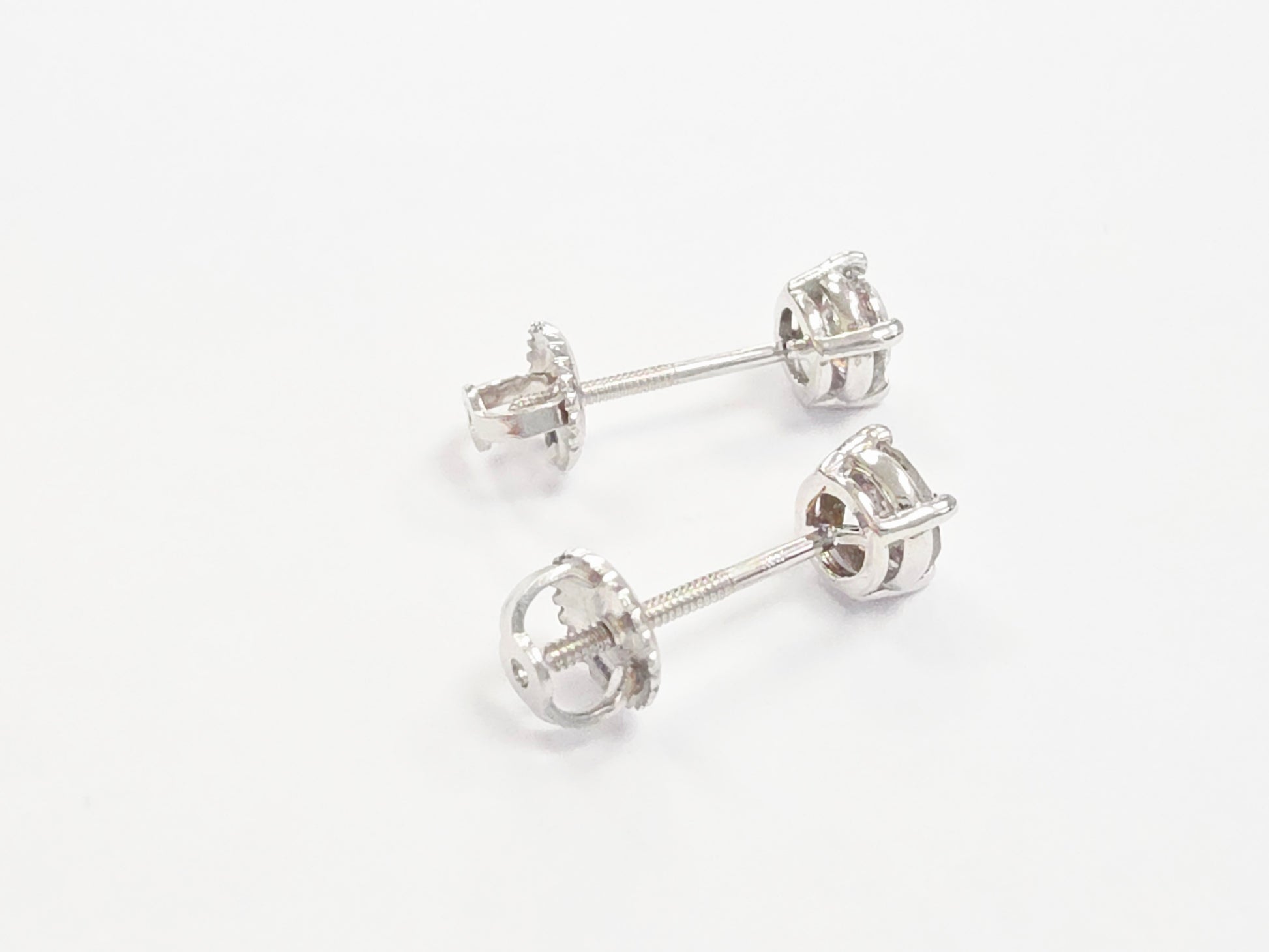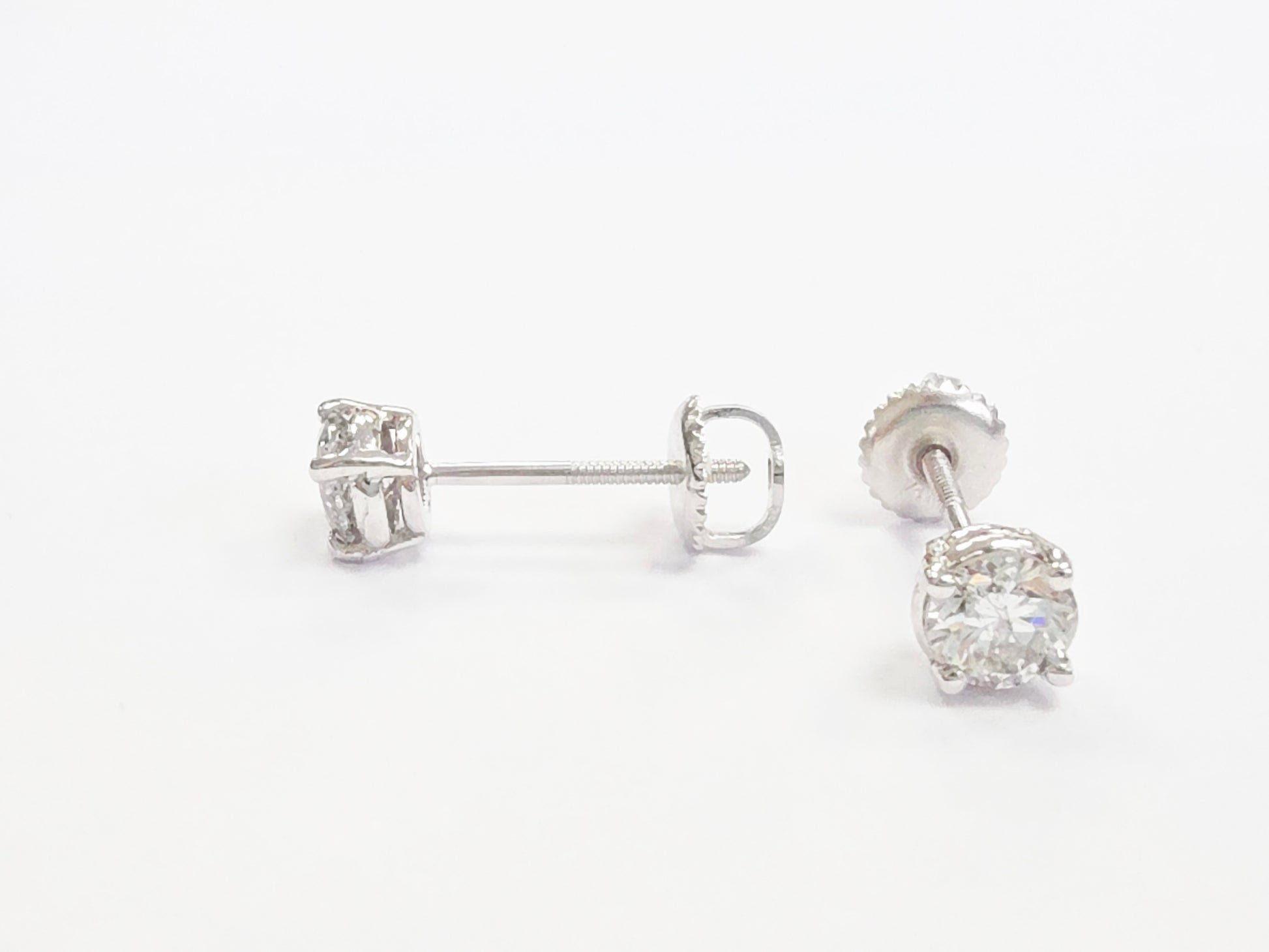 0.93 Carat Natural Diamond Round Stud Earrings in 14K White Gold