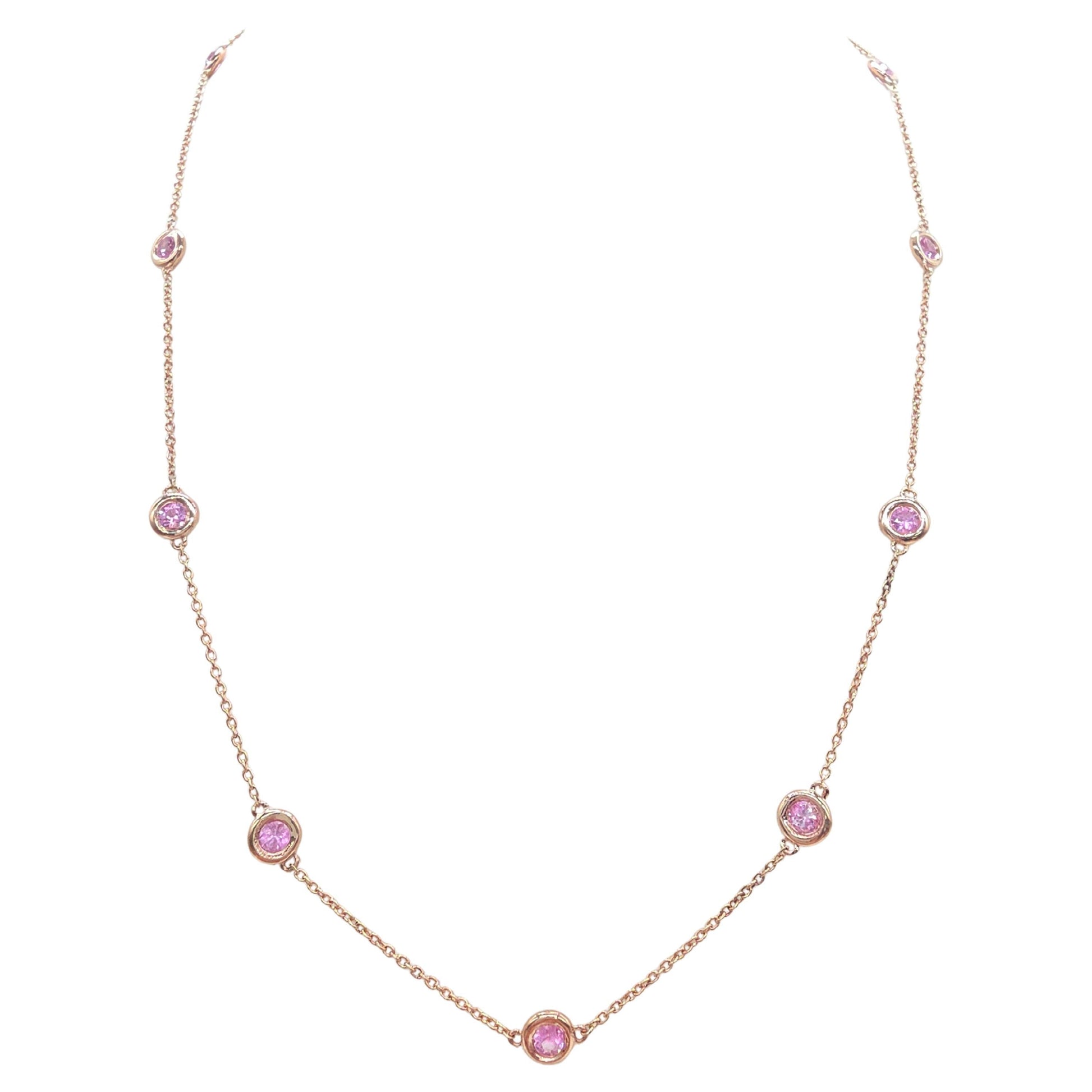 1.48 Carat Natural Pink Sapphire Station Necklace 14 Karat Yellow Gold 17''