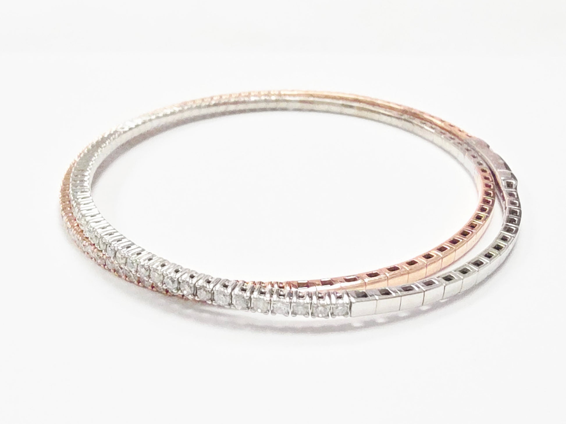 1.68 Carat Two-Tone Diamond Double Row Flexible Bangle Bracelet — 14K White & Rose Gold