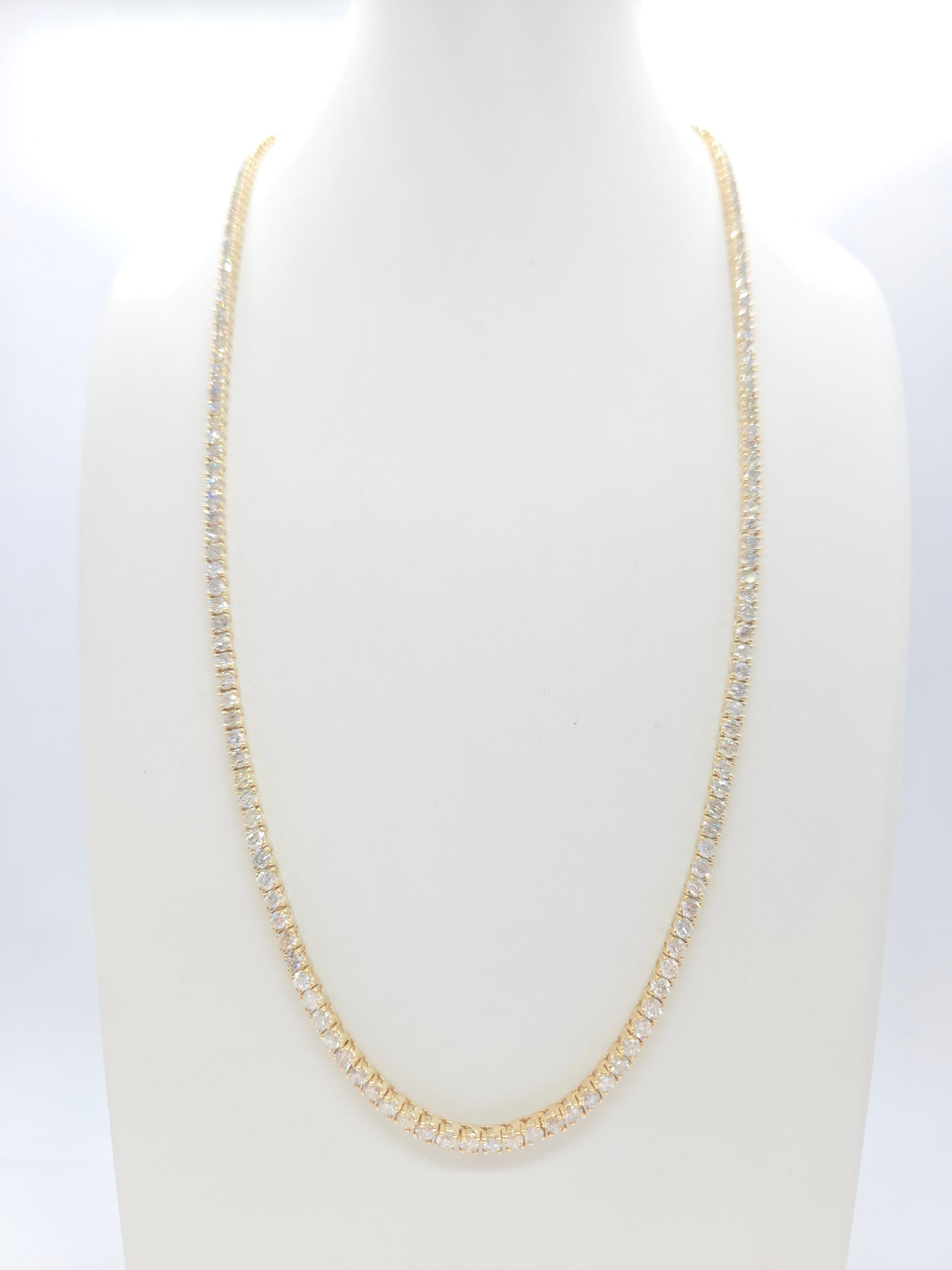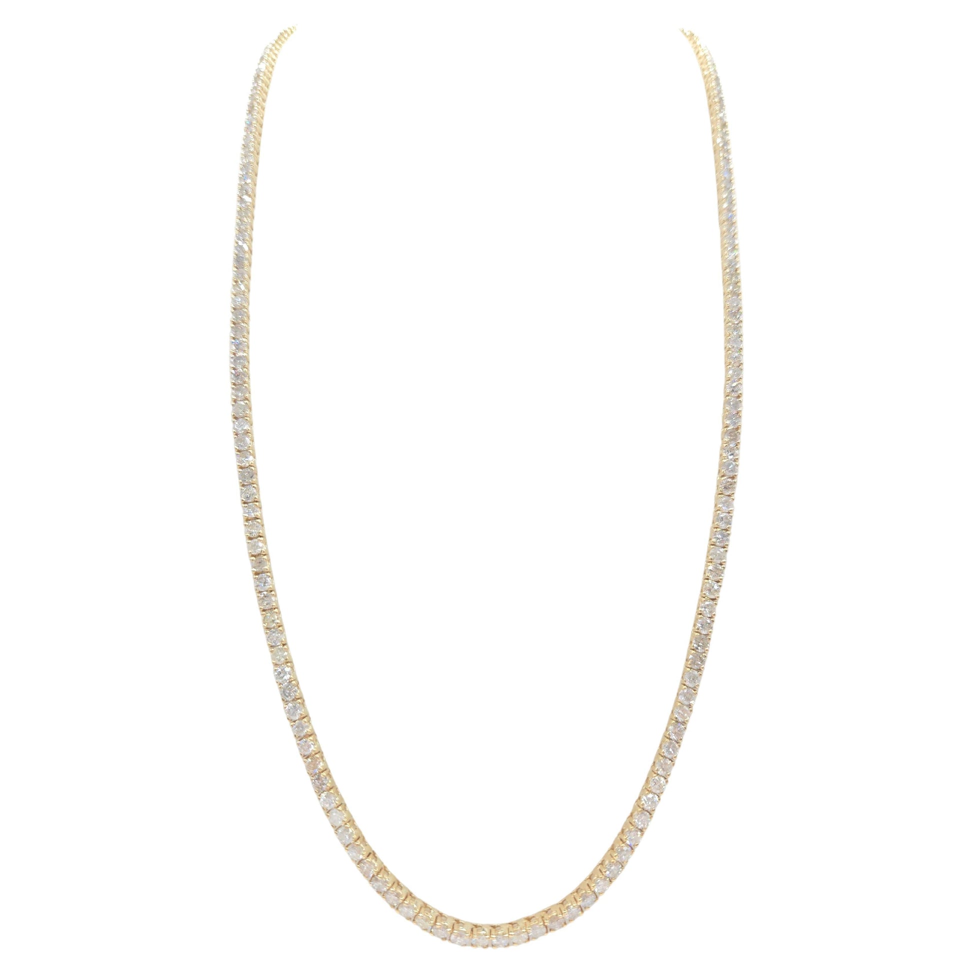 16.10 Carat Natural Diamond Tennis Necklace – 14K Yellow Gold, 22 Inches