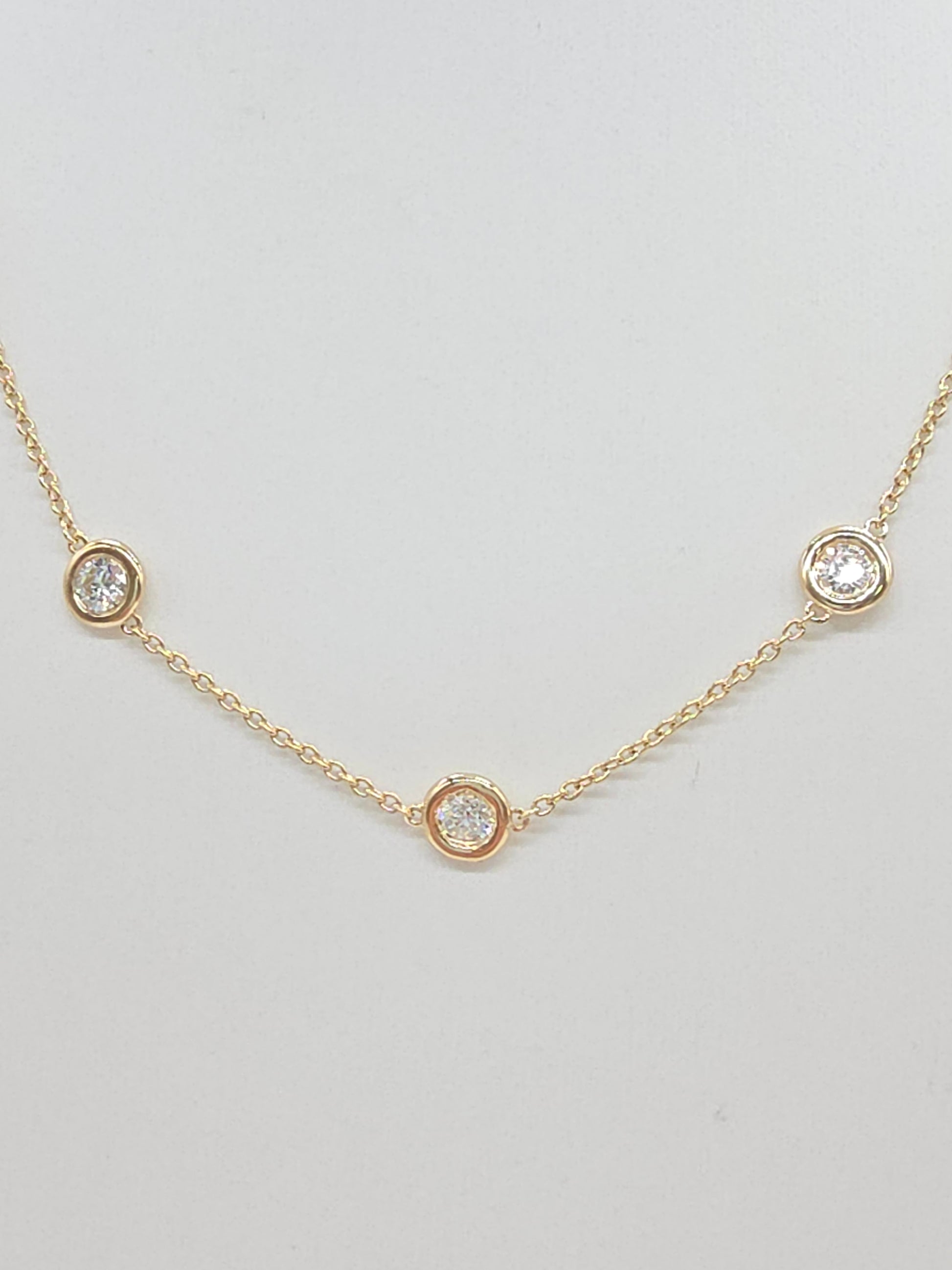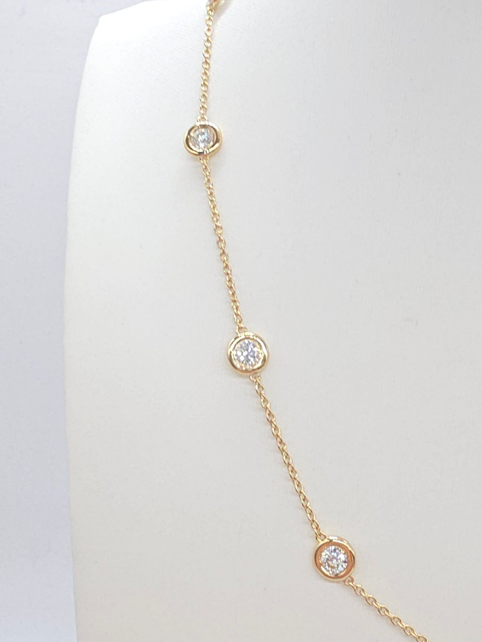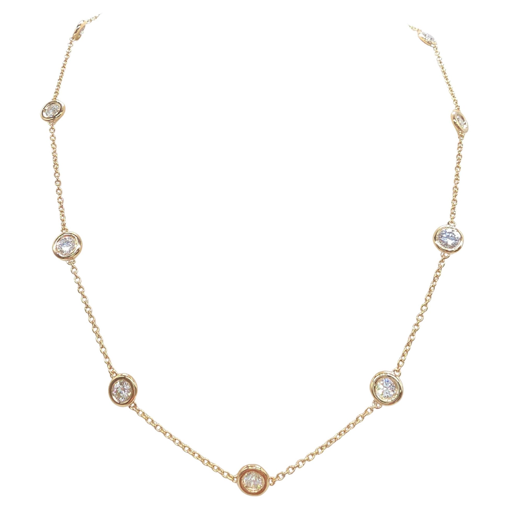 2.57 Carat Natural Diamond By The Yard Necklace 14 Karat Yellow Gold 16''
