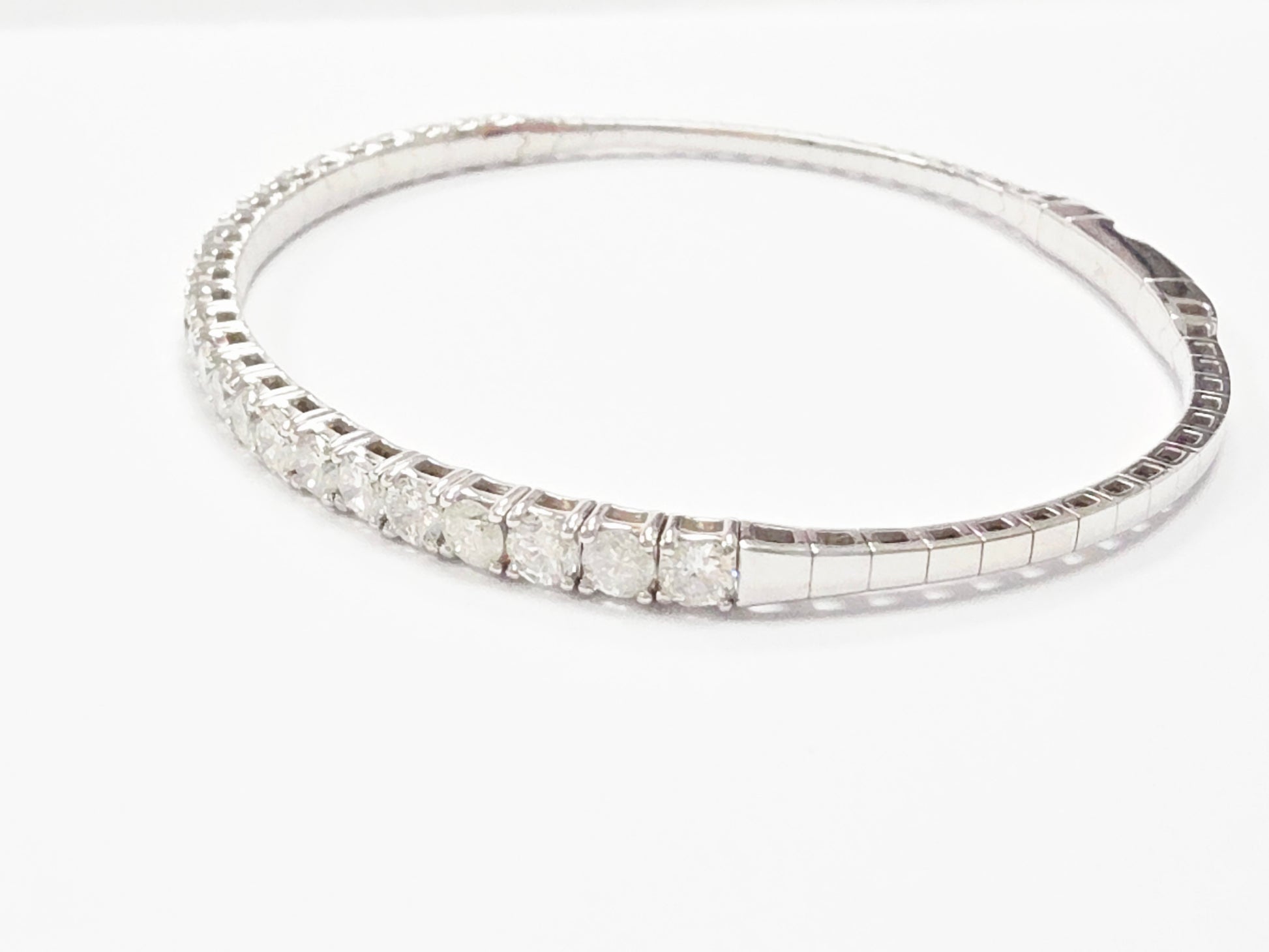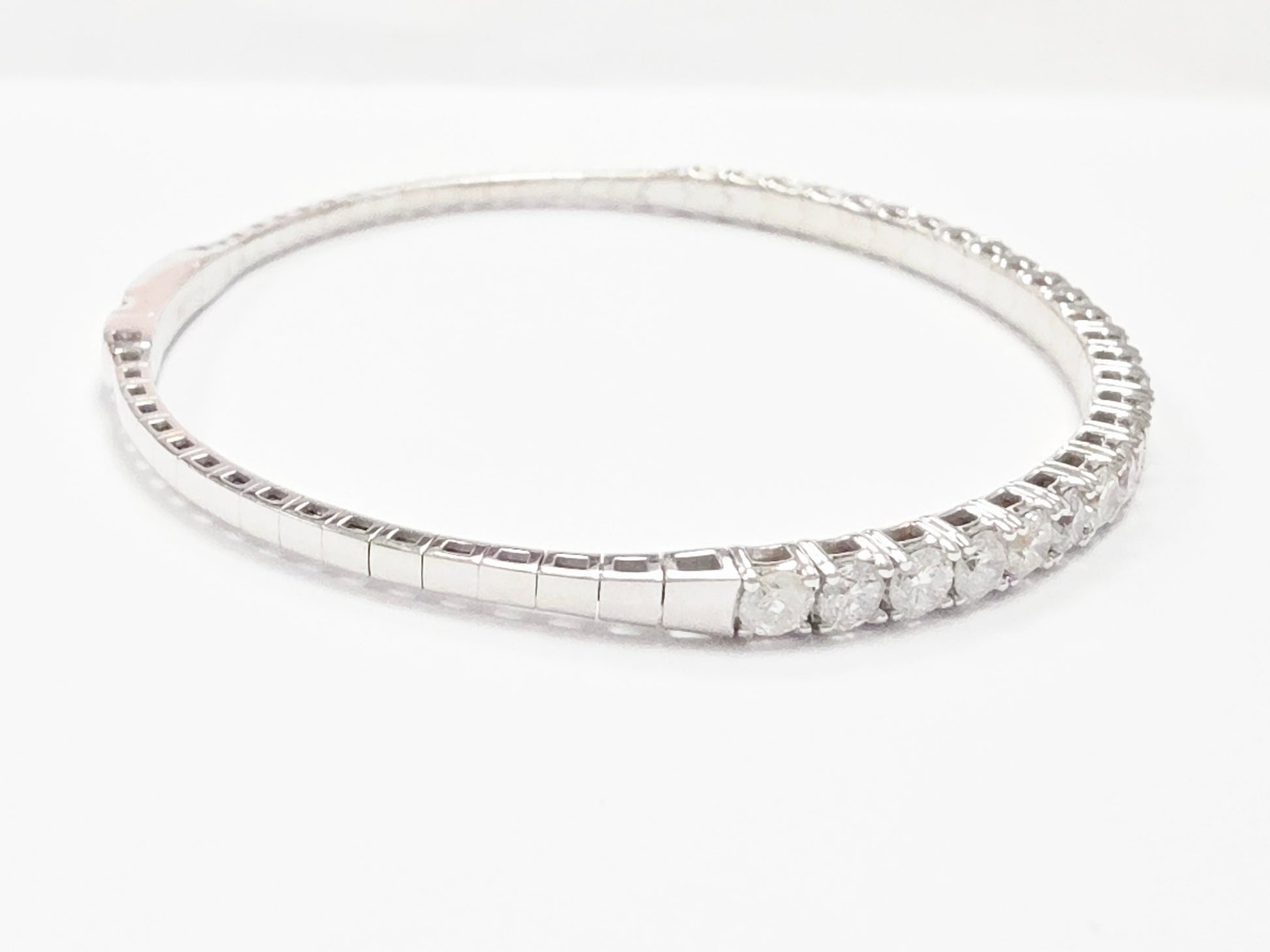 3.08 Carat Natural Diamond Flexible Bangle White Gold 14 Karat