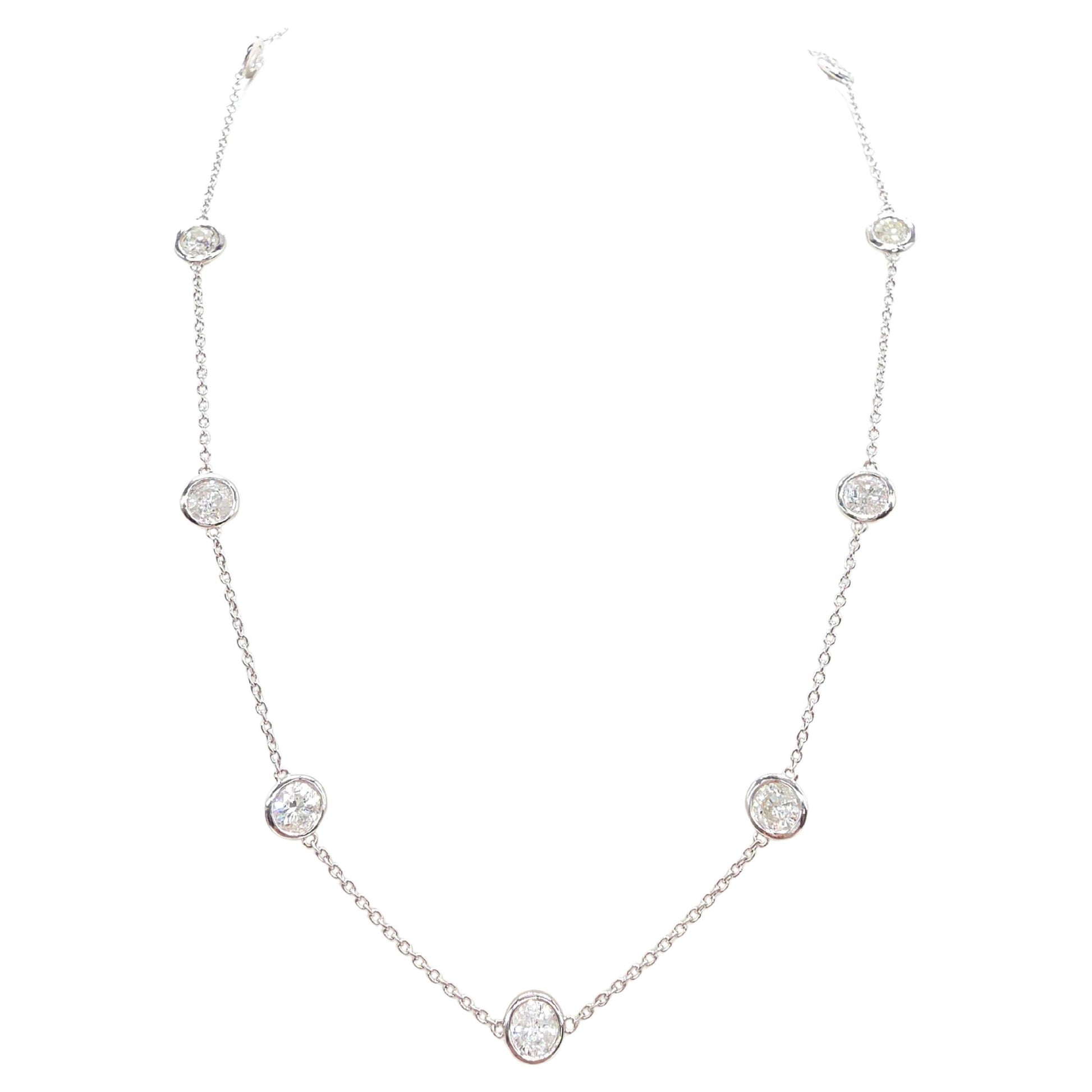 6.56 Carat Nature Diamond By The Yard Necklace 14 Karat White Gold 18''
