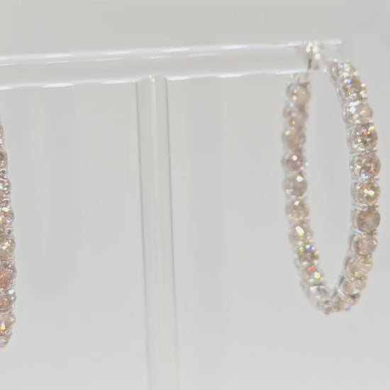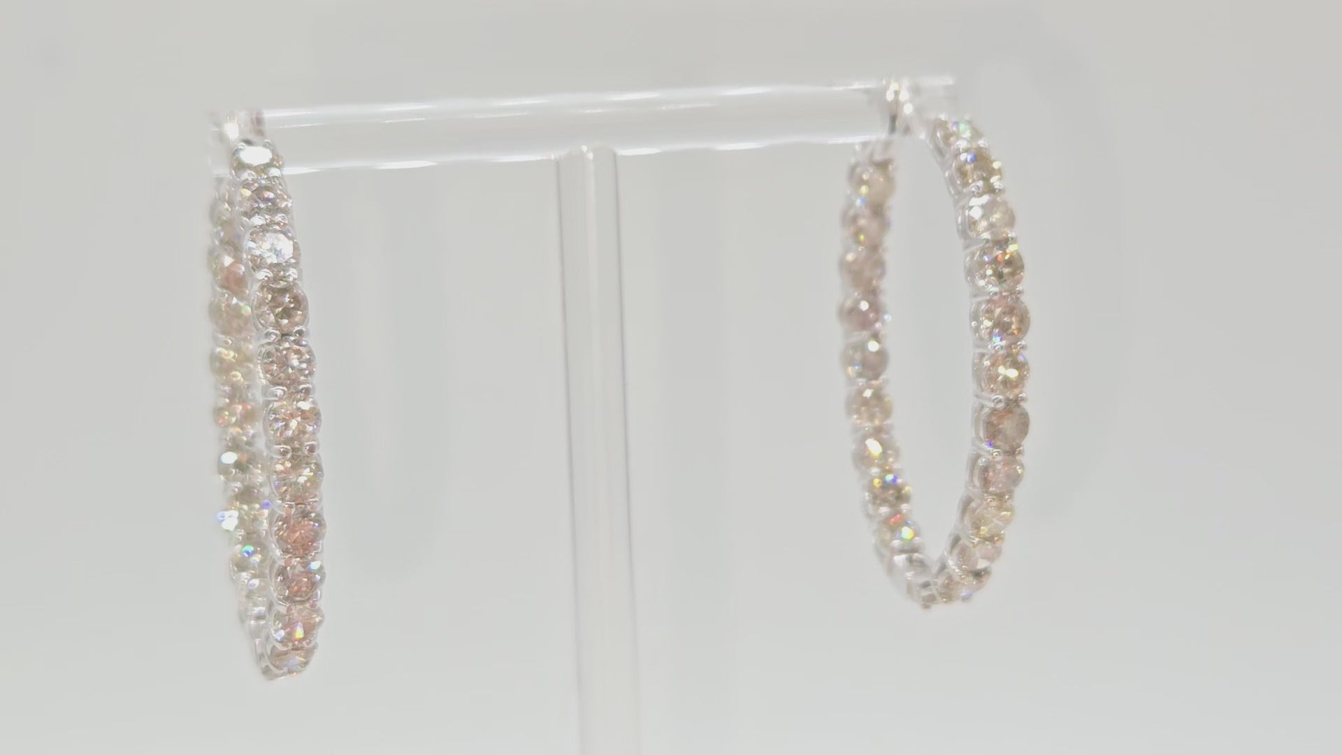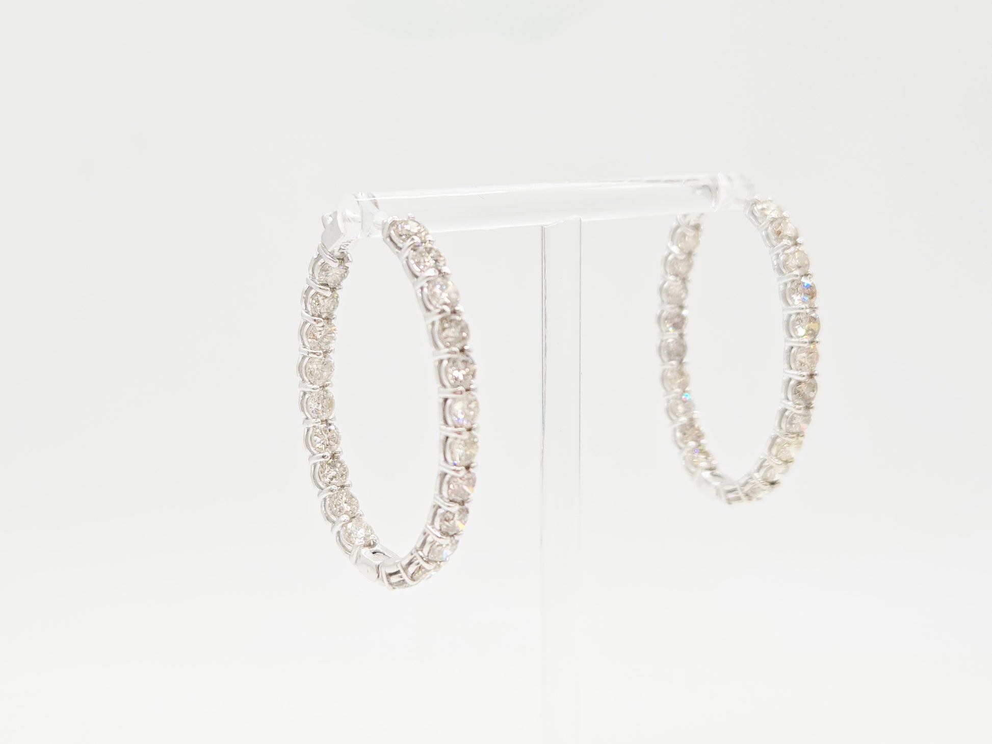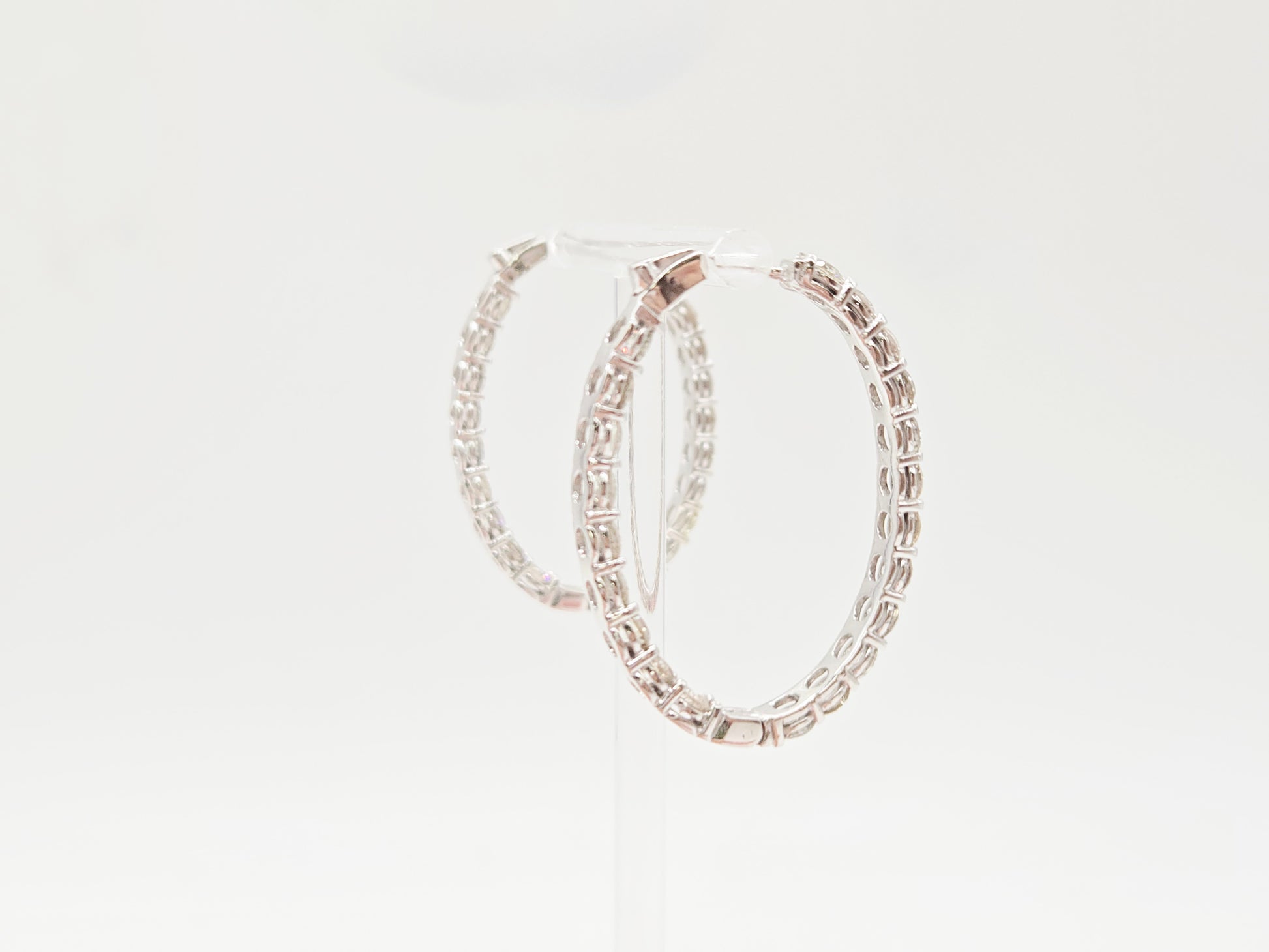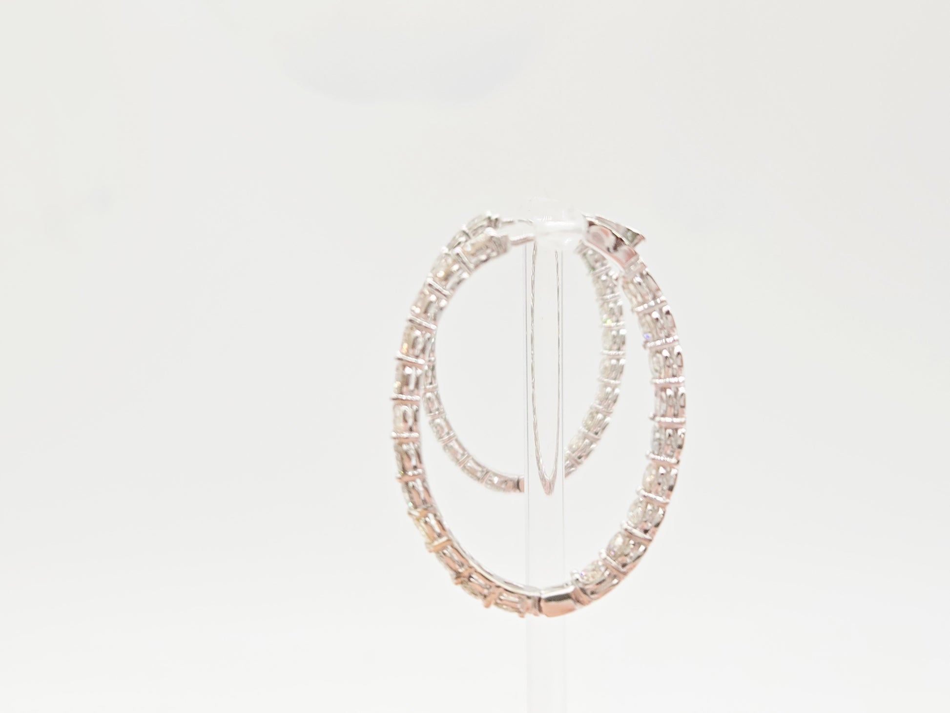 9.26 Carat Natural Diamond Large Oval Hoop Earrings in 14 Karat White Gold