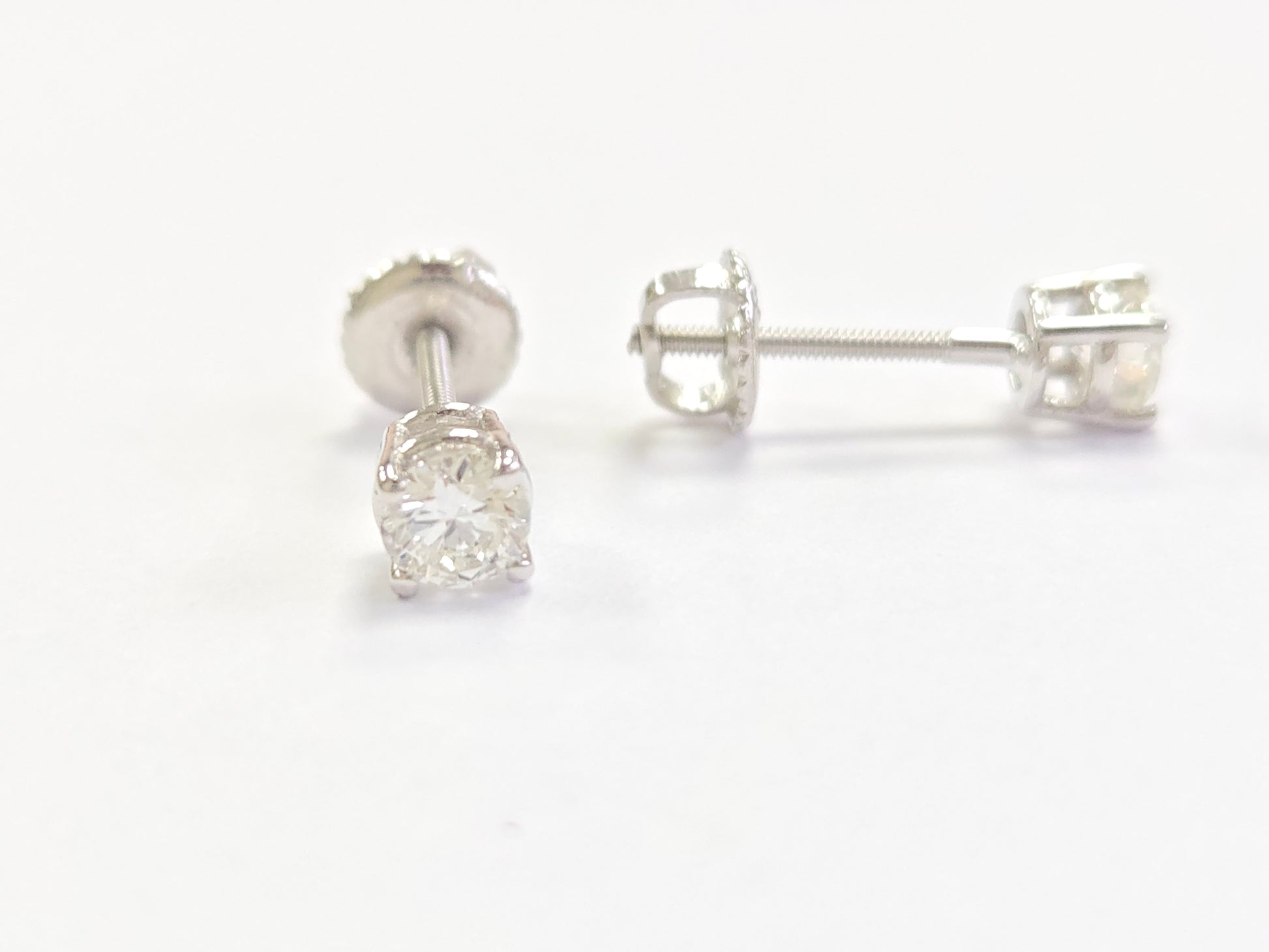 0.50 Carat Natural Brilliant Round Diamond Studs Earrings in 14K White Gold
